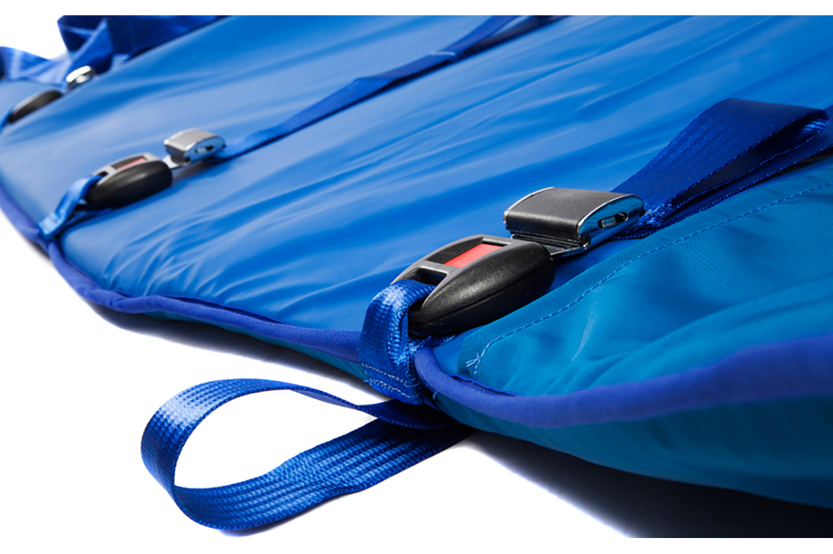 Díky pevné konstrukci, pěnovému polstrování a nylonovým nosným podpěrám poskytuje maximální komfort a ochranu při přepravě pacienta. Spodní kluzná vrstva umožňuje snadný transport po různých površích, včetně betonových nebo venkovních ploch. Podložka je vybavena třemi popruhy k zajištění pacienta, přičemž speciální kapsa na chodidla zabraňuje nechtěnému pohybu během evakuace.