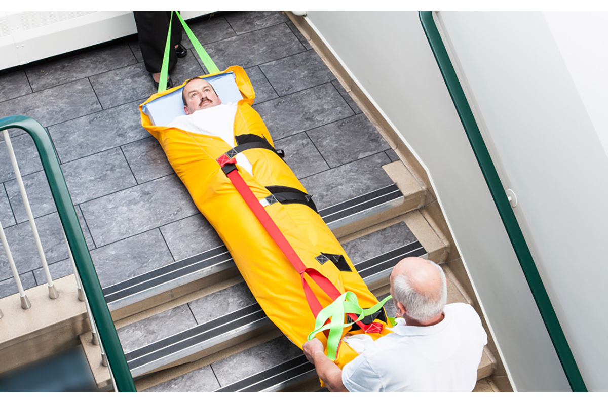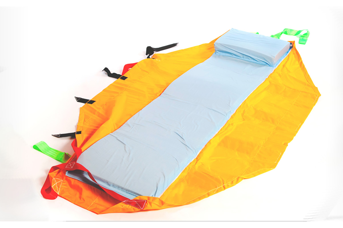 Polstrovaná evakuační podložka s nastavitelnou délkou pro bezpečný transport osob. Vhodná pro nemocnice, školy a zařízení sociálních služeb.