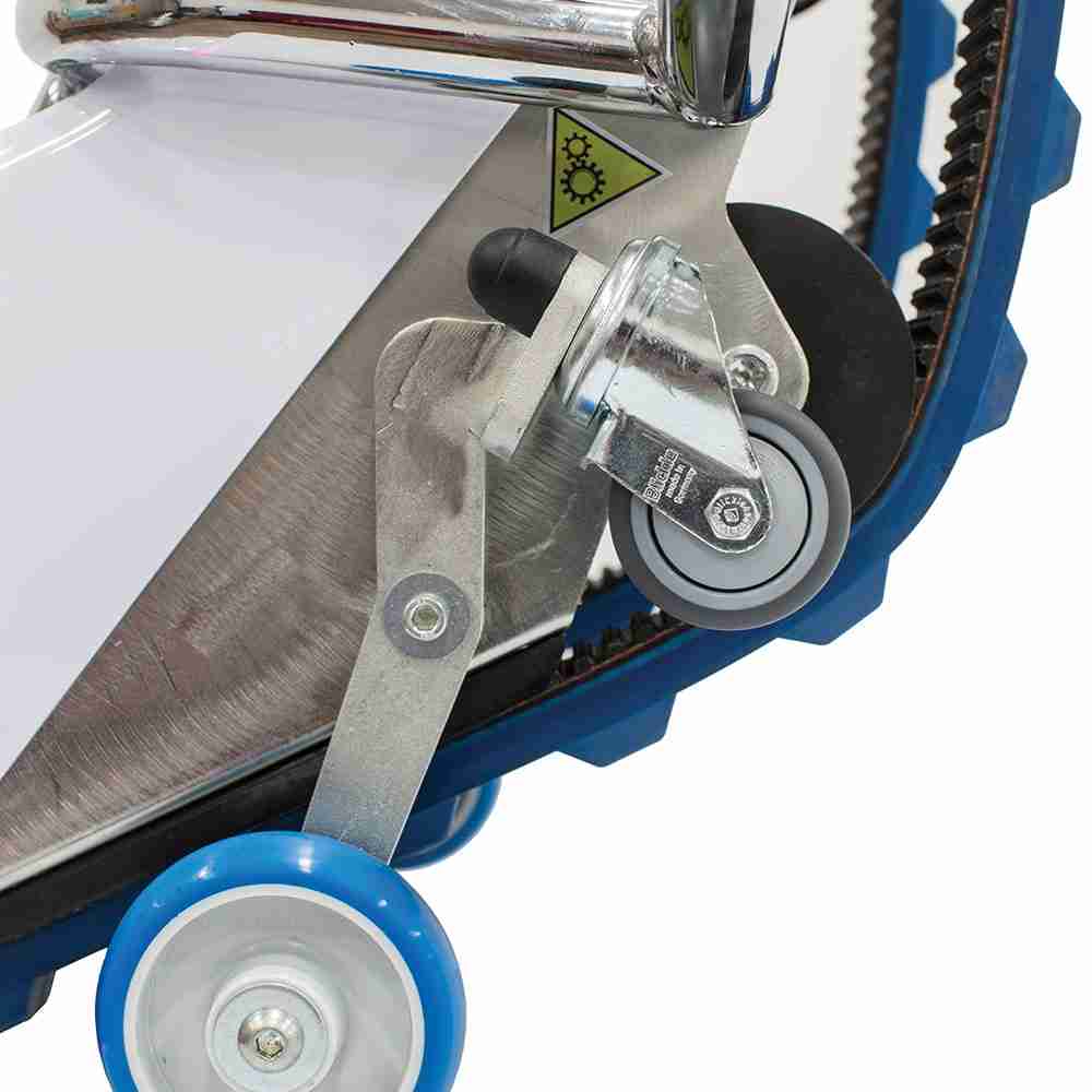 Pomocná kolečka umístěná vzadu usnadňují bezpěčný pohyb po schodech.