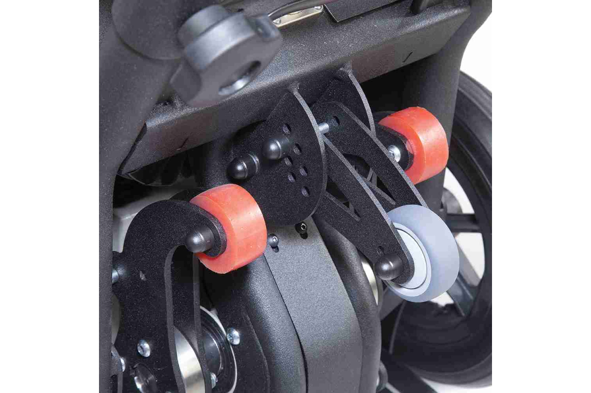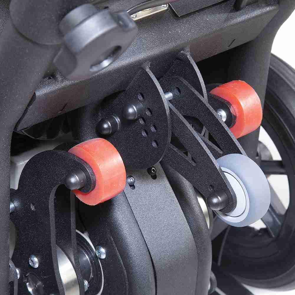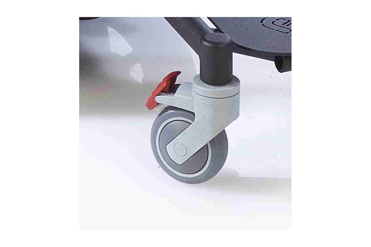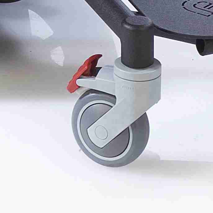 Přední otočná kolečka s brzdou zajišťují snadnou manévrovatelnost a ovladatelnost pro hladnou jízdu.