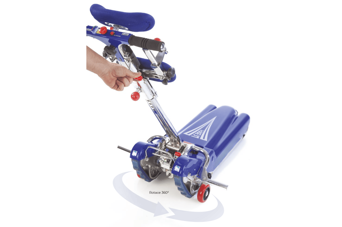 Tento pásový schodolez je určený pro bezpečnou přepravu osob na invalidním vozíku po schodištích. Konstrukce využívá patentovaný systém elektrického zvedání manévrovacích koleček, který umožňuje otáčení na místě a přesnou manipulaci i v úzkých prostorech. Model nabízí zvýšenou nosnost 150 kg a stabilní trakci na schodech.