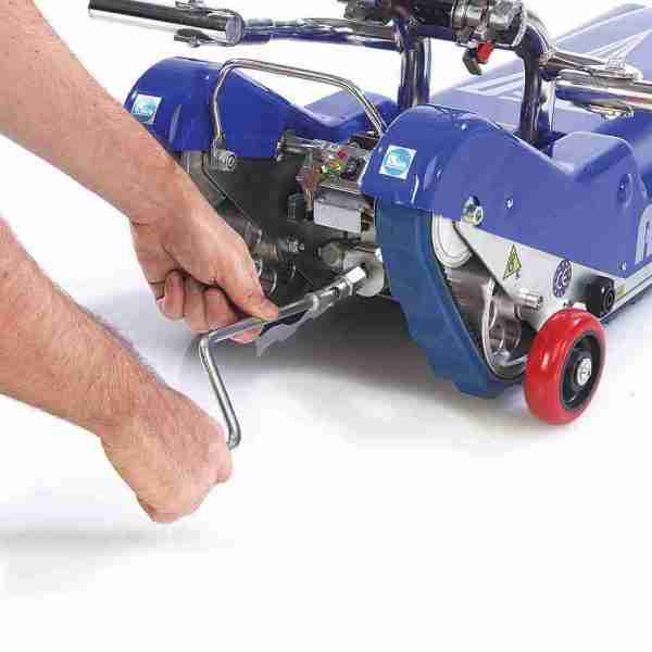 V případě potřby je možné využít ruční pohyb čtyř zvedacích kol i pásů.