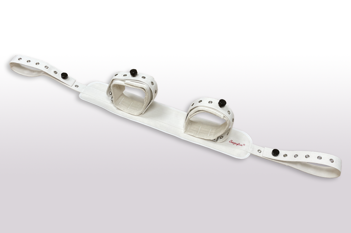 Jedinečné uzavírání na magnetický zámek umožňuje optimální nastavení pásu kolem stehen pacienta a zároveň zabraňuje jeho uvolnění nepovolanou osobou.