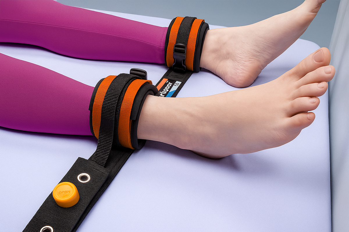 Pohodlné zařízení z neoprenu pro zajištění pacienta a pro rychlé nasazení a uvolnění. Zabraňuje pacientovi vypadnutí z lůžka nebo sebepoškození, vhodné pro pohotovostní služby, neurologii a JIP, kde je čas rozhodujícím faktorem.