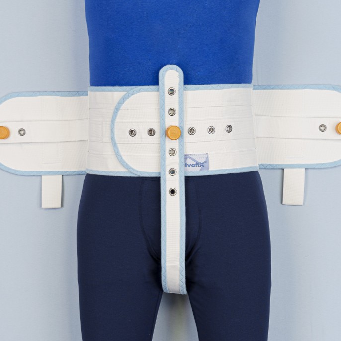 Tento výrobek je dodáván s příčným páskem, který zabraňuje jakémukoli násilnému nebo okamžitému zapojení, takže pacient nemůže zranit sebe ani ostatní. U nenásilných pacientů lze tento postroj používat bez příčného popruhu. Tímto způsobem získává pacient vyšší stupeň pohyblivosti a je schopen se posadit na posteli, aniž by se posunul nahoru.