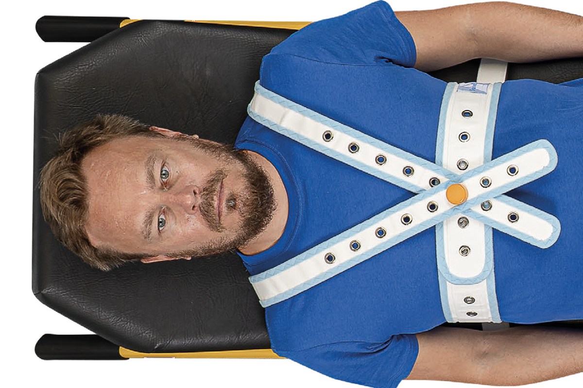 Jeho hlavní funkcí je zabránit vertikálnímu posunu pacienta a předejít náhlým pohybům nebo úderům hlavou. Díky ergonomickému designu umožňuje pohodlné a rychlé použití na nosítkách a překonává omezení upevnění jiných tradičních systémů. Systém zahrnuje bezpečnostní uzávěr s magnetickým otevíráním, který zaručuje spolehlivé, bezpečné a klinicky účinné použití.