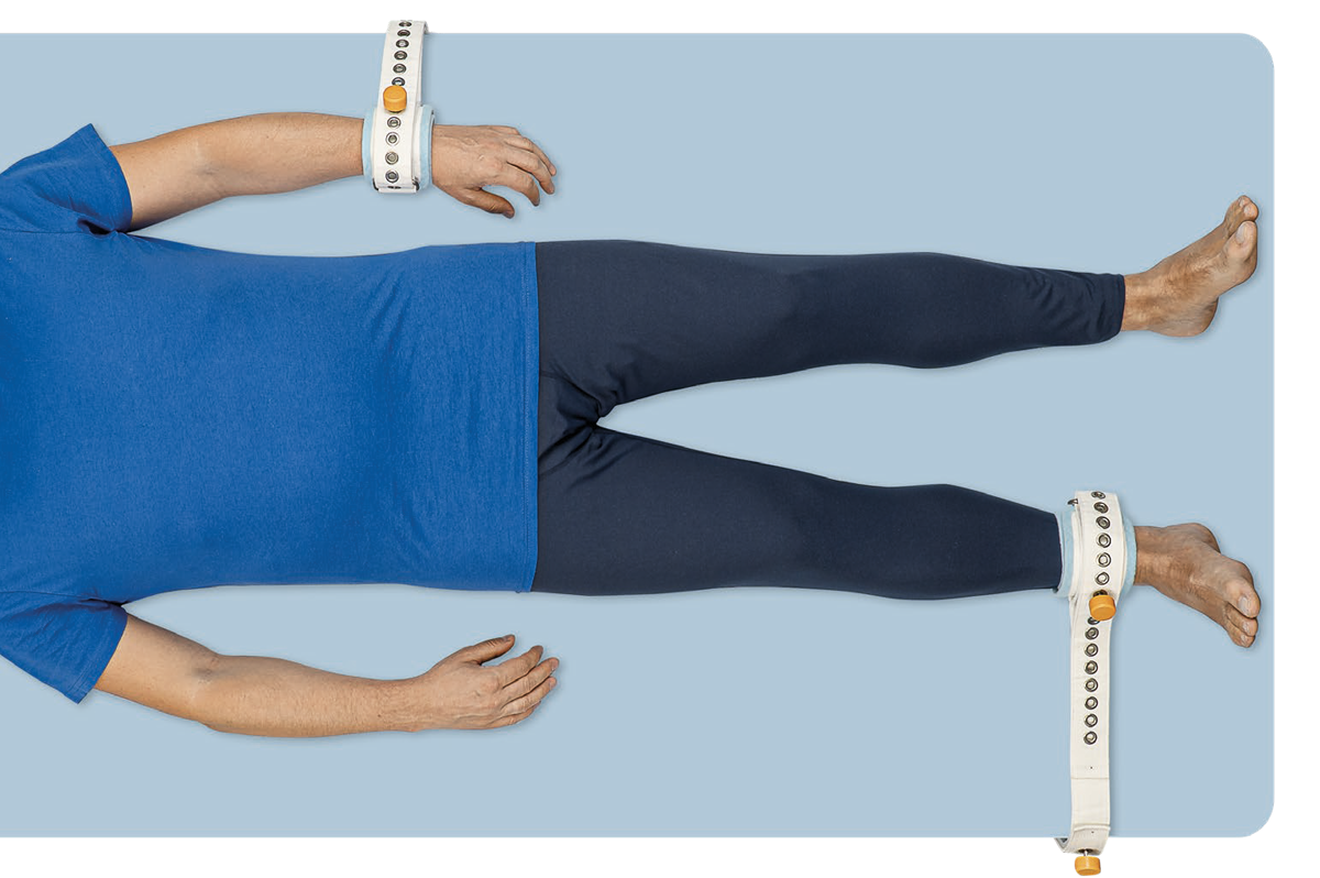 Fixační set UNI pro ruce i nohy je navržen tak, aby současně zajišťoval horní a dolní končetiny dezorientovaných, neklidných nebo násilných pacientů, zabraňoval sebepoškozování, manipulaci s jinými zádržnými systémy a chránil ošetřovatele.