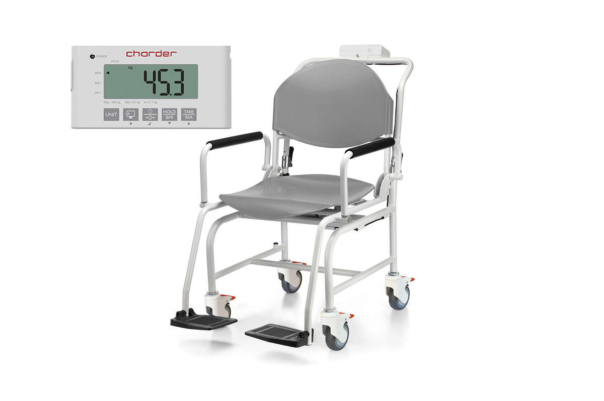 Elektronické skládací a vážící křeslo, kalibrované do 250 kg s BMI a BSA