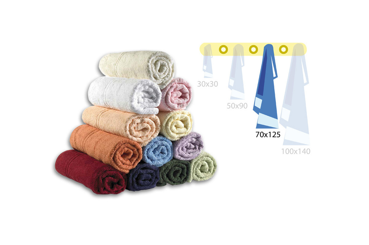 Osušky 70x125 cm. Vhodné do náročných provozů s vysokou savostí a odolností. Technologie vplétání bavlněné smyčky do polyesterové osnovy zajišťuje vynikající savost, dlouhou životnost a měkkost.