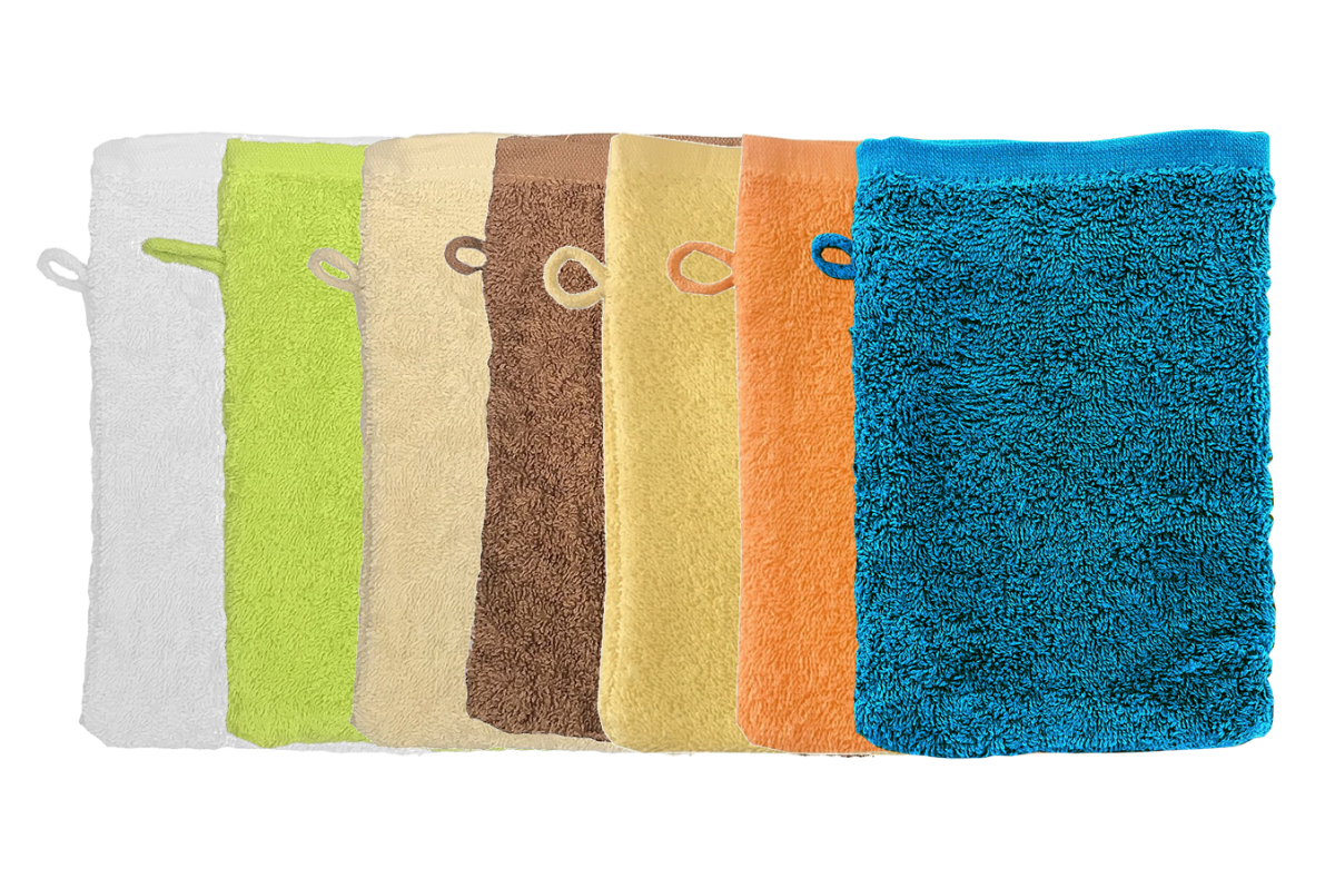 Mycí žínky jsou vyrobeny z kvalitního, příjemného, měkkého materiálu, 100% bavlna, prstencová příze.