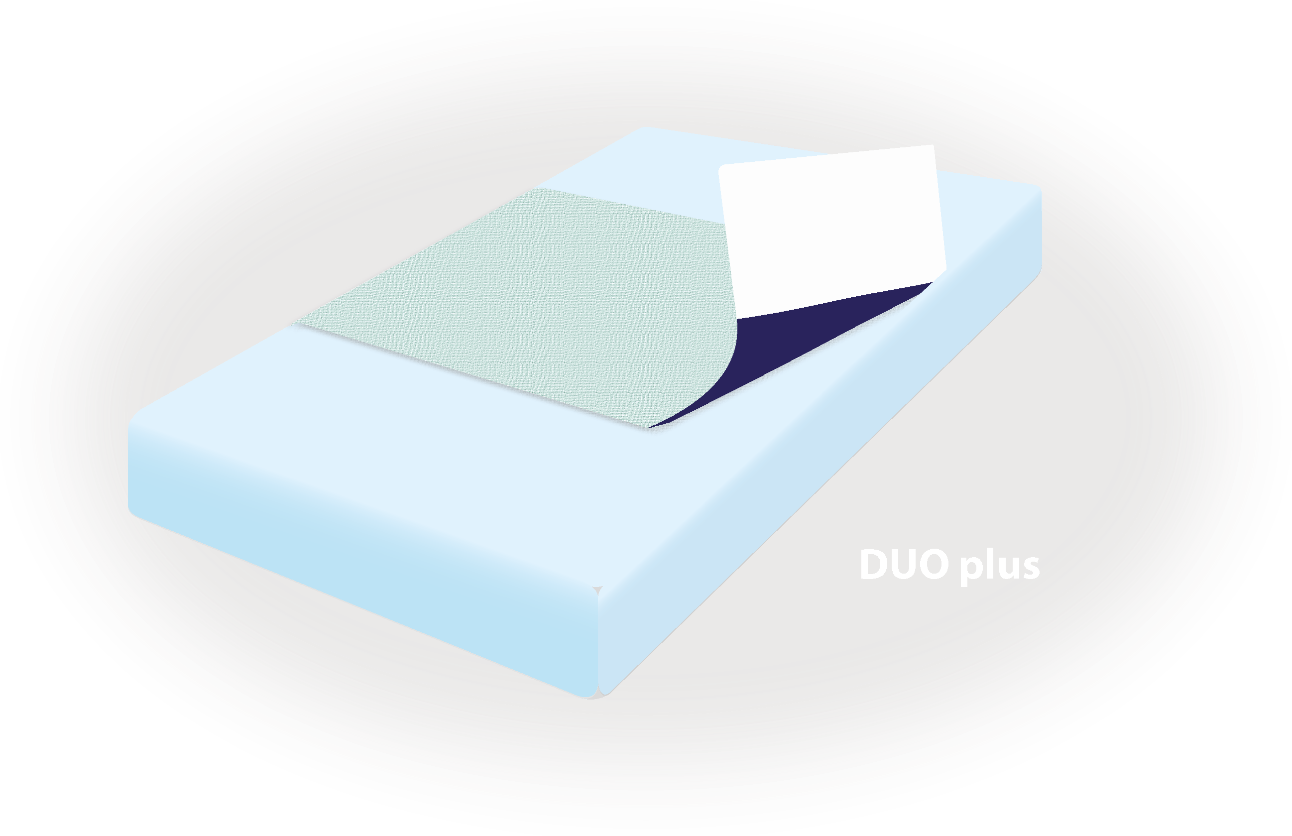 Podložka DUO+ je vyrobena technologií laminace několika vrstev - svrchní kontaktní vrstvy s dermatologickou úpravou zamezující dráždění pokožky, střední absorpční vrstvy a spodní vrstvy z kluzného vodonepropustného materiálu. Díky uvedené technologii je zamezeno vzniku skladů a záhybů pod ležící osobou a tím i nebezpečí vzniku dekubitů. Použití podložky snižuje četnost výměny lůžkovin, údržba je jednoduchá. Podložka DUO+ se na lůžko umisťuje zelenou stranou nahoru.