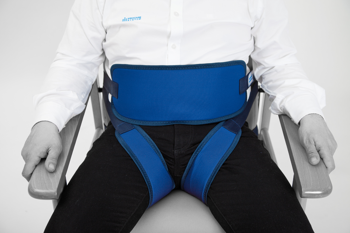 Pás s fixací v rozkroku je navržen tak, aby zabránil sklouznutí pacienta ze sedadla a zajistil stabilní a bezpečné uchycení v sedě. Je zvláště vhodný pro osoby s funkčním postižením nebo problémy s posturální stabilitou.