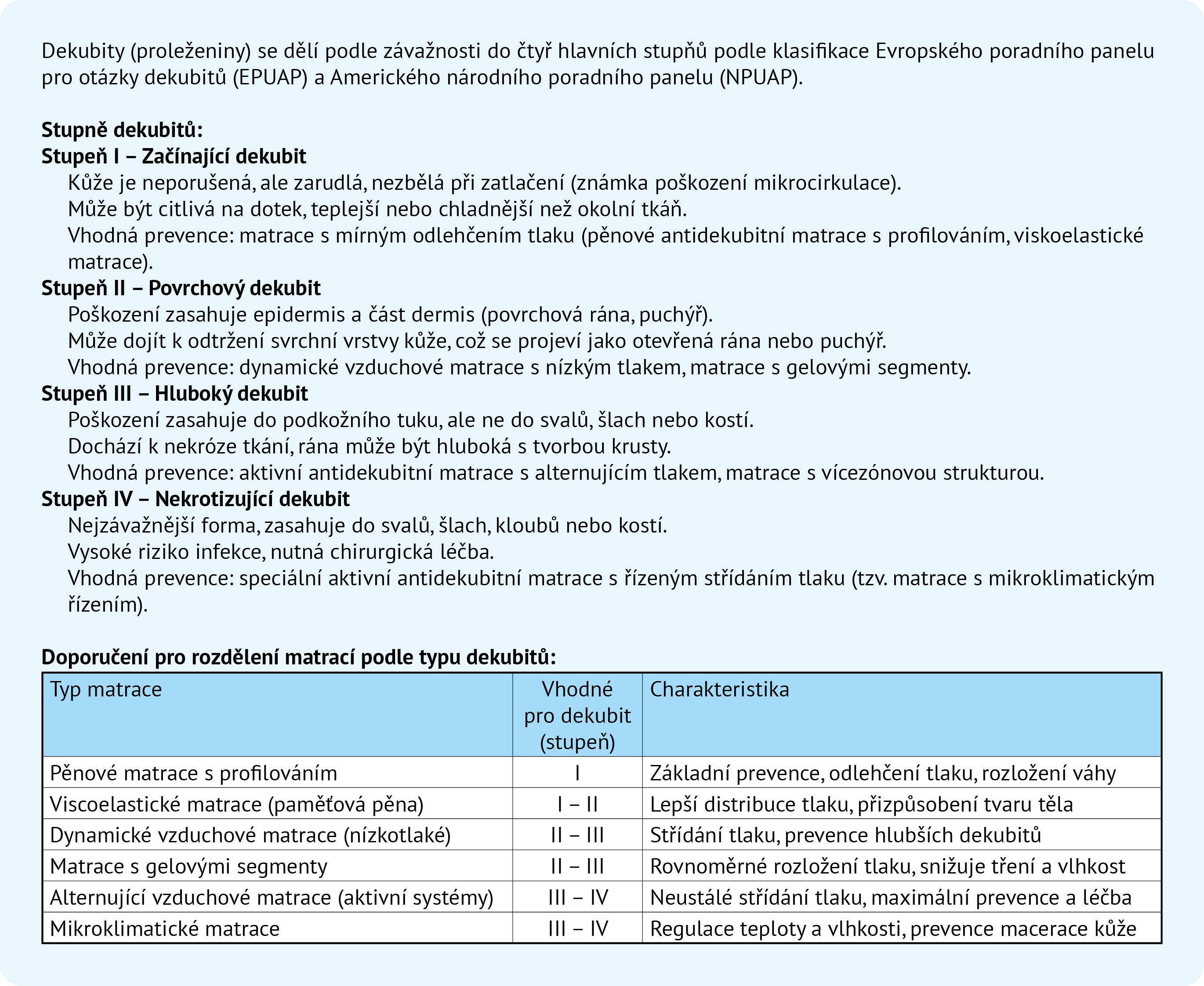 Zdravotnická matrace je oboustranná, vhodná pro pacienty s I. stupněm rizika vzniku dekubitů.