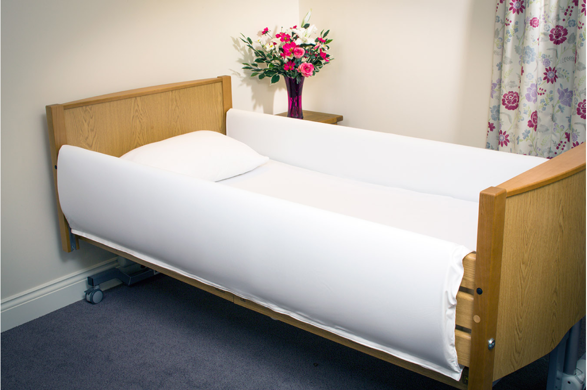 Ochranné polstrování postranic chrání před poraněním, je omyvatelné, snadno se fixuje  k postranici pomocí suchého zipu.