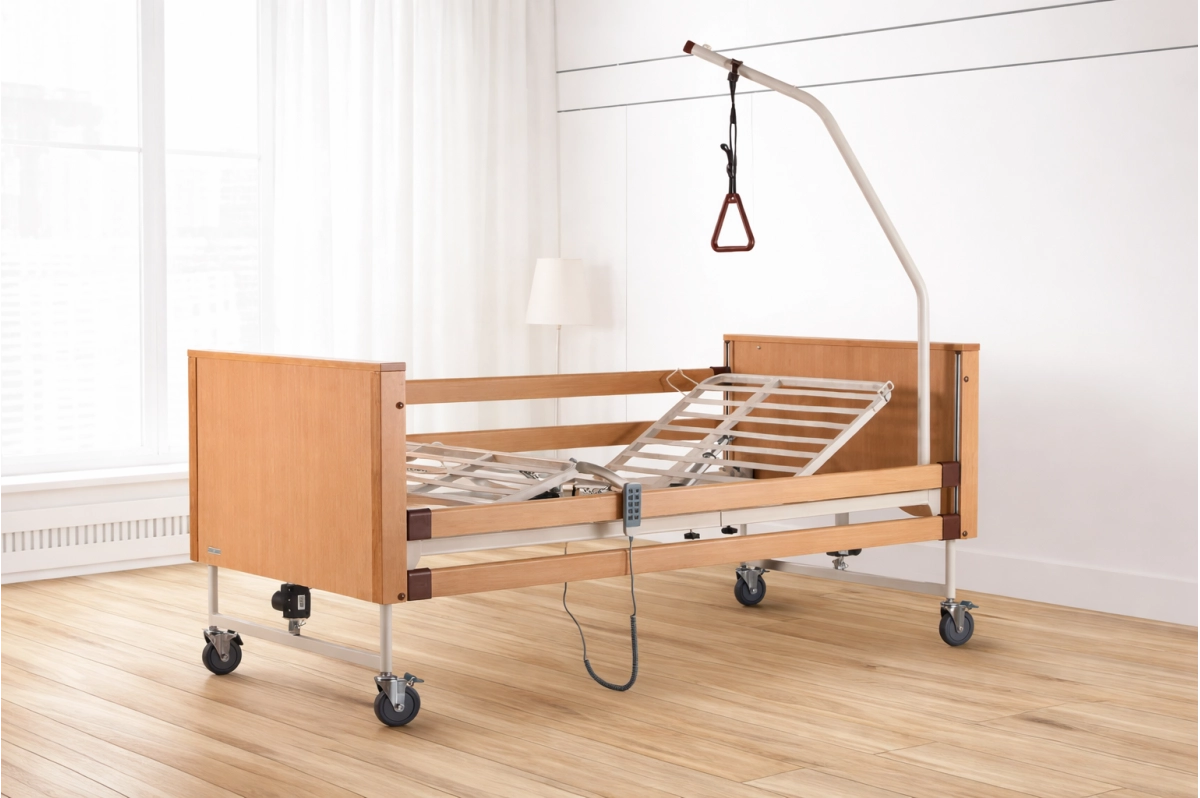Elektrická polohovací postel Socrate je určena pro domácí i profesionální péči. Nabízí elektrické nastavení výšky, zadního i stehenního dílu, pevnou konstrukci a dřevěné bočnice pro přirozený vzhled v interiéru. Vhodná pro dlouhodobé používání.