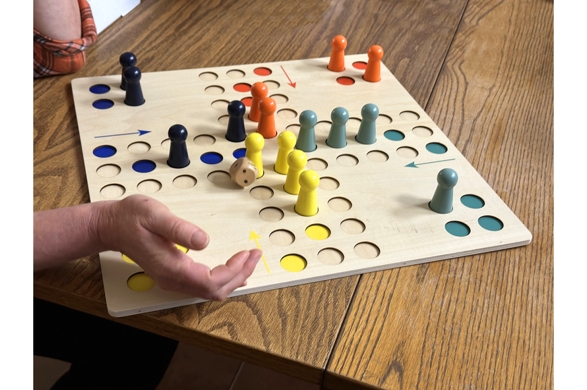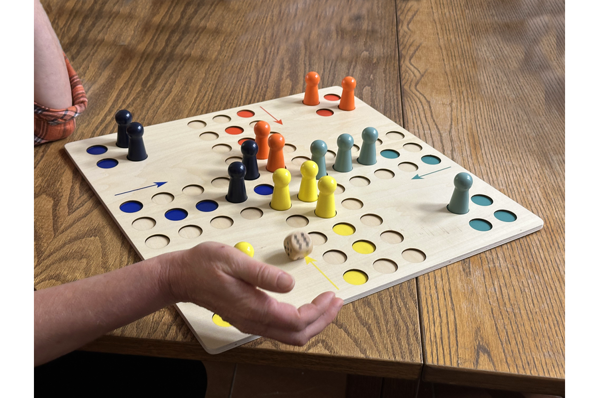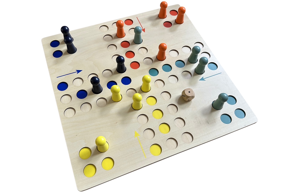 Oblíbená hra ve velkém formátu s velkými figurkami. Hrací políčka jsou v desce zapuštěna kvůli lepší stabilitě figurek.