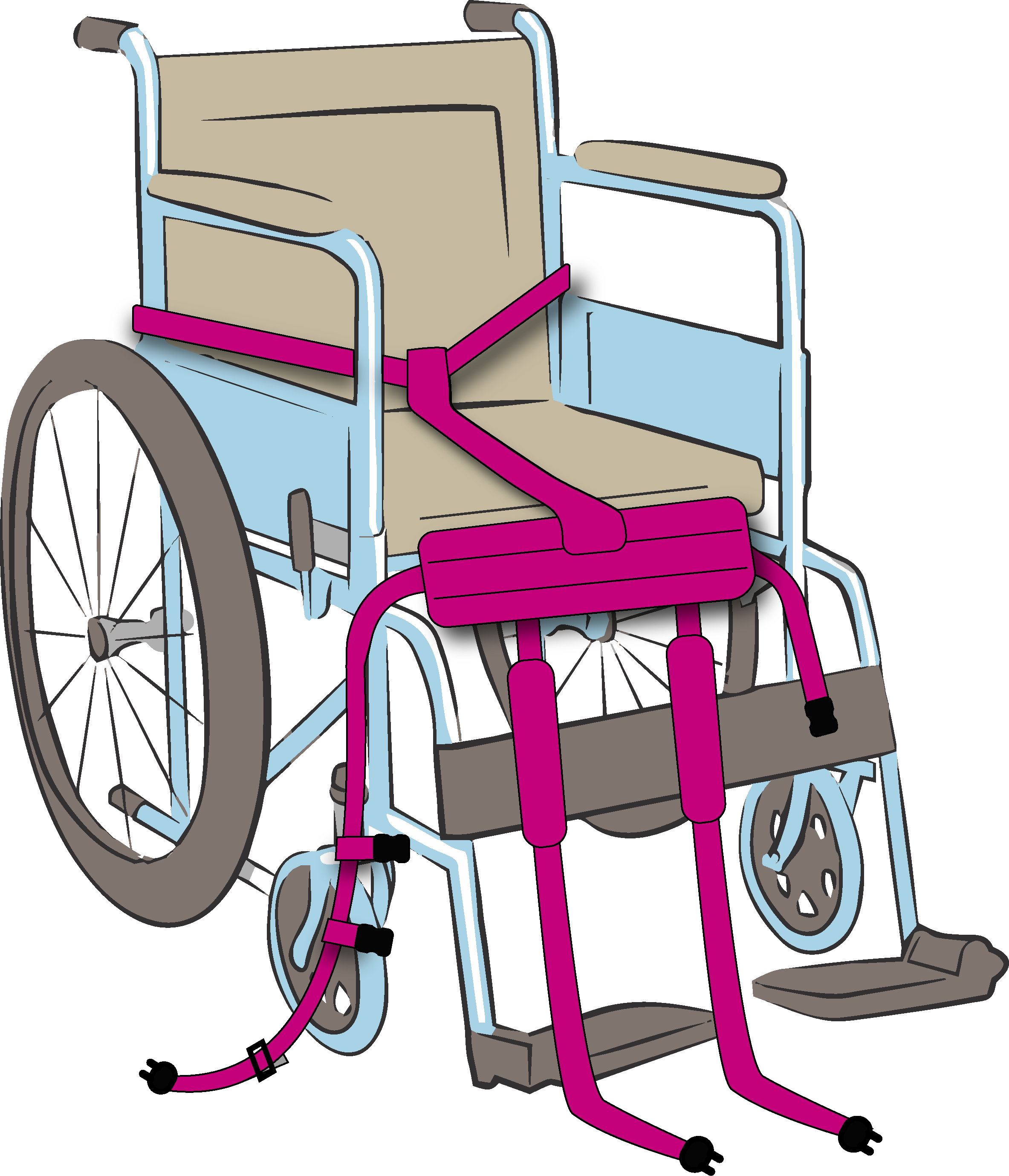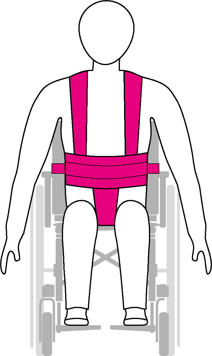 Pásy slouží k bezpečné fixaci osob na invalidním vozíku. Popruh držící tělo v rozkroku se zezadu přichytí k opěrce vozíku, následně se zapne kolem uživatele břišní popruh a k němu se fixují popruhy přes obě ramena. Popruhy jsou polstrovány pro zajištění maximálního komfortu. Výplň z měkké pěny s vnější stranou z polypropylenu a s vnitřní stranou z polyesteru, která zabraňuje pocení. Ergonomický design pásu umožňuje individuální přizpůsobení každé postavě. Úprava a uvolňování pomocí spon zajistí rychlé nastavení popruhů.