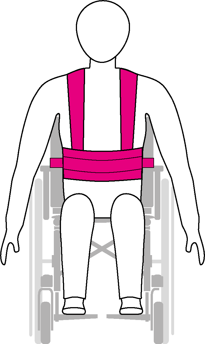 Pás bezpečně fixuje osobu v invalidním vozíku.