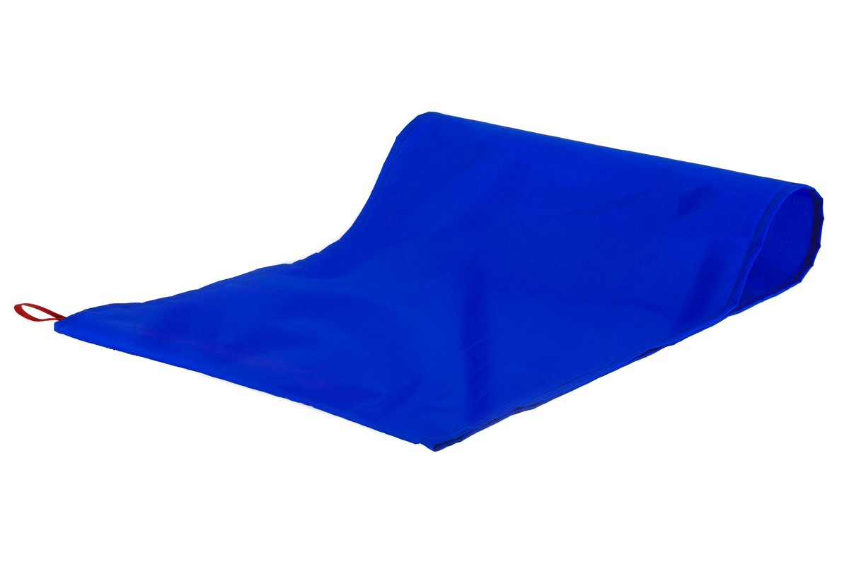 Opakovaně použitelný kluzný rukáv má modrou barvu. Odolná tkanina je vhodná pro praní podle standardních pokynů pro nemocniční praní.